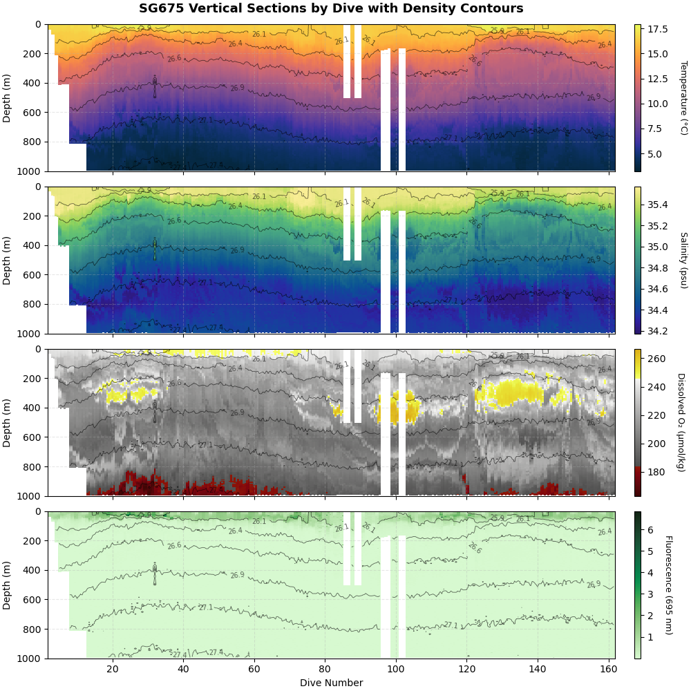 The gliders have primarily been moving from west to east, navigating through a region that includes a prominent seamount.