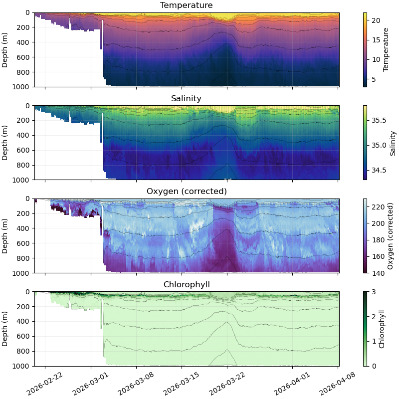 Our platforms are currently in the water, measuring both at the surface and profiling at depth, follow their trajectory and live data here, and links to completed missions in the table below.